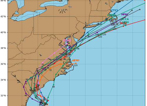 The latest spaghetti models, which display multiple forecast paths for the storm, indicate it may track up the East Coast, moving through the Mid-Atlantic with a more coastal approach, and narrowly miss New York City.