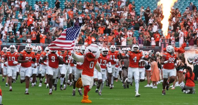 After its loss to USF, Florida dropped out of the rankings. The Bulls entered the top 25 at No. 18. Additionally, Miami’s in-state and conference rival, FSU, moved from No. 14 to No. 10 after dominating East Texas A&M 77-3 in Tallahassee.