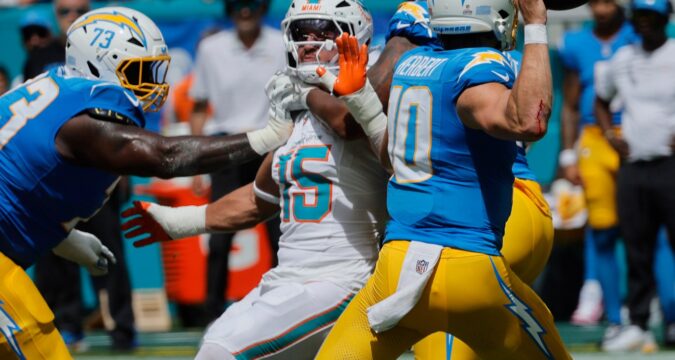 4. The Chargers entered Sunday on their fourth and fifth tackles, their third running back and didn’t have top receiver Quentin Johnson. In other words, if the Dolphins defense couldn’t get healthy against this battered offense, there’s little hope. Well, there’s little hope. The telling drive until the wild finish was the Chargers taking the second half kickoff, down 13-9, and assembling a 13-play, 72-yard drive that ended with Herbert throwing 5 yards to McConkey for a TD. That gave the Chargers a 16-13 lead. The Chargers, who were 1 of 7 on third downs in the first half, were 3 of 3 that drive. They ate 7:34 of the third quarter — nearly half of it.