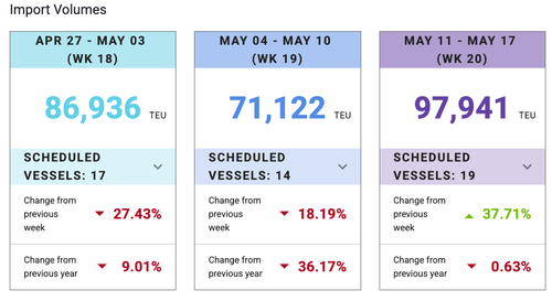The takeaway is that the trade war shock for imported Chinese goods is underway. Imported volumes of high-volume staples are likely to crater through the end of June, which may spark shortages.