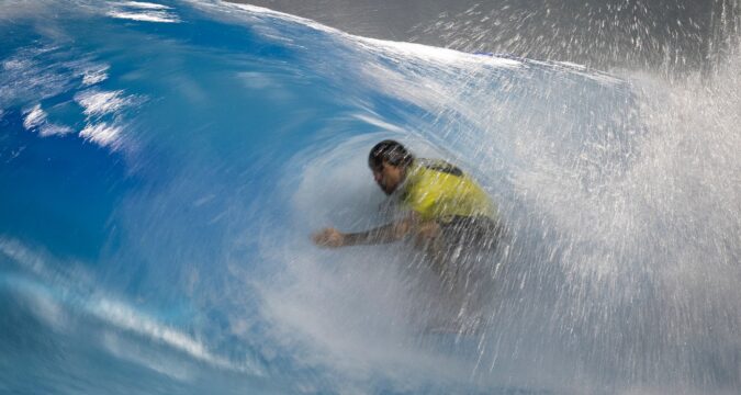 Poulos explained there were subtle differences between the wave pool and the ocean from the buoyancy of the water to the swell angle.