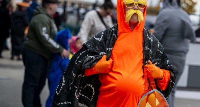 Abbie, 12, walks around with her family Thursday, Oct. 23, 2025, during IronPigs Charities’ annual Suites ‘N Treats event at Coca-Cola Park in Allentown. The event creates a safe and inclusive environment for all children. With the help of IronPigs marketing partners, various booths are decorated around the concourse for children to trick or treat through. (April Gamiz/The Morning Call)