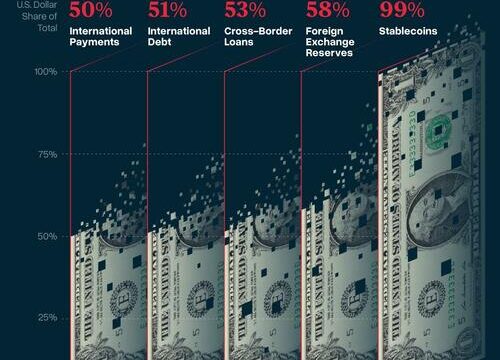 Despite some signs of de-dollarization in traditional finance, the digital realm tells a different story. A striking 99% of all stablecoins are pegged to the U.S. dollar, underscoring its pivotal role in crypto-based finance.