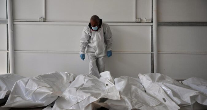 Photos showed the remains, in white body bags, arranged in rows inside the grounds of Nasser Hospital. Health officials have struggled to identify bodies without access to DNA kits.