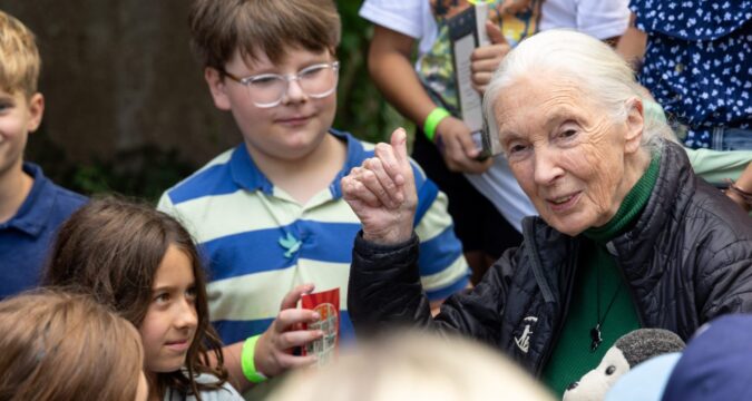 On Saturday, families gathered inside the Kovler Lion House to hear the world-renowned scientist talk about Roots and Shoots, a community-led conservation program from the Jane Goodall Institute to empower youth with resources for practical solutions to environmental and conservation challenges.