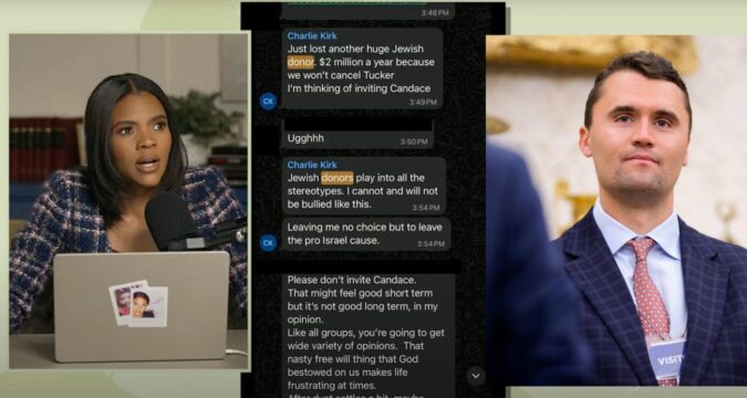 “Just lost another huge Jewish donor. $2 million a year because we won’t cancel Tucker,” Kirk wrote, adding, “I’m thinking of inviting Candace.” Another member of the thread, whose identity has not been revealed, responded, “Ugghhh”; later someone adds “Please don’t invite Candace.”