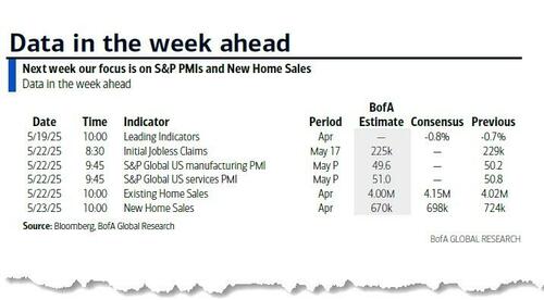 Finally, looking at just the US, Goldman notes that the key economic data releases this week are initial jobless claims on Thursday and new home sales on Friday. There are many speaking engagements by Fed officials this week, including Chair Powell, Vice Chair Jefferson, and Governors Kugler and Cook.