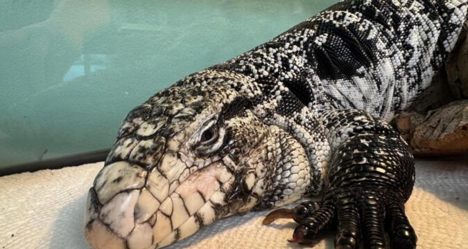 The lizard, a tegu, which is found in South America, was suffering from frostbite to its tongue and “showed signs of significant muscle weakness after prolonged exposure to the cold,” the New England Wildlife Center, an organization that provides veterinary care, said on Facebook.
