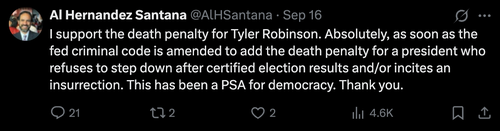 An X account matching the Hernandez-Santana profile contains a series of anti-Trump posts.
