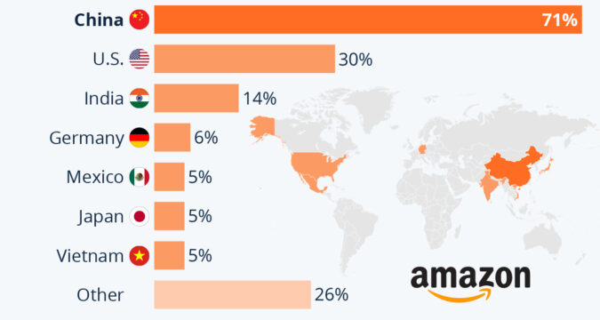 As Statista’s Anna Fleck notes, these figures illustrate the importance of China for Amazon’s business.