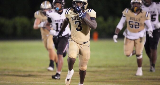 The Bulls missed a 43-yard field goal attempt with 6:11 left in the second quarter, and Palm Beach Central (0-2) capitalized with a scoring drive on the ensuing possession. Senior quarterback Chance Routson connected with senior wide receiver Antoine Perry for an 8-yard score to cut the deficit to 21-7 with 35 seconds left in the first half.