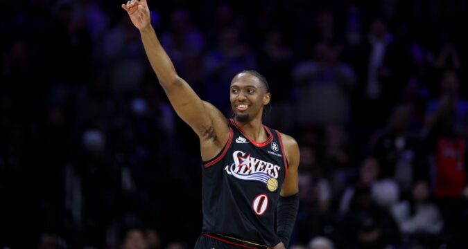 Maxey came in with 882 3-pointers, three behind Iverson, and broke the record with 1:38 left in the first quarter. He made all five of his 3s — a career high for a period — and scored 20 points in the first quarter alone. He finished 5 of 12 beyond the arc.