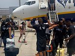 Posted in News Moment fists fly as British stag do erupts into brawl just after landing at Tenerife airport following onboard row July 18, 2025 The appalling footage captures a group of men dressed in black stag do tops engaging in a violent scuffle after disembarking a Ryanair flight from the UK. https://www.dailymail.co.uk/news/article-14917621/Stag-brawl-Tenerife-Airport-tarmac-row-plane-Stansted.html?ns_mchannel=rss&ns_campaign=1490&ito=1490