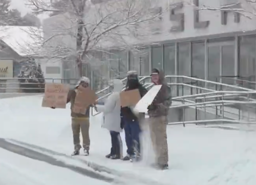 BREAKING: Droves of @elonmusk protesters (at least 5) braving the weather at the Tesla store in Loveland Colorado. The least I could do was honk lol https://t.co/qIlo0WEjcj pic.twitter.com/wo5j0X1d8Y