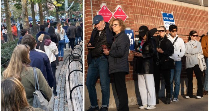 On the final day of early voting, voters wait on long lines outside the American Museum of Natural History in Manhattan. (Andrew Julien / New York Daily News)