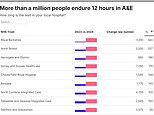 Posted in News More than a MILLION NHS patients have spent 12 hours or more in A&E this year prompting fears of a new winter crisis – find out how long the wait is in YOUR local hospital October 23, 2024 Some 1.09 million people were in emergency departments for a full half a day before being admitted, transferred or discharged from hospital between February and September. https://www.dailymail.co.uk/news/article-13987229/MILLION-NHS-patients-12-hours-emergency-fears-new-winter-crisis.html?ns_mchannel=rss&ns_campaign=1490&ito=1490