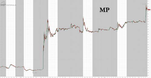 Recall that one year ago, in our April 2024 note titled “Next Big Mineral Trade Revealed by Morgan Stanley,” we identified MP Materials as “one company that stands to benefit” from the restoration of America’s rare earth supply chain.