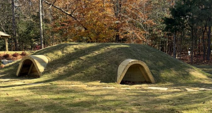 The playground is designed for toddlers through teenagers of all capabilities and their families. Features include hills for climbing and rolling; an embankment slide; a gazebo with electricity where programs will be held; large boulders for climbing; a sand play area; magnifying stations for exploration; outdoor musical instruments with chimes, pipes and drums; a reading circle; a picnic area; and plenty of space for running and playing. There will also be a storybook trail through the woods with rotating tales throughout the year.