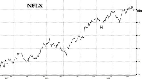 Looking ahead to Q4, the company expects to generate $10.13 billion in revenue (above the median consensus of $10.05 billion), which would translate into $2.190 billion operating income, or a 21.6% profit margin, vs the 21.2% expected, and expects $4.23 in EPS, which is also above the 3.90 exp. While NFLX no longer provides subscriber guidance, it sees 4Q paid net additions higher than 3Q due to normal seasonality and a strong content slate. It notes that 2024 programming has been “patchier than normal due to last year’s strikes.”