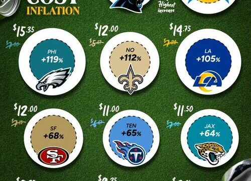 Four teams saw beer prices more than double, including the Philadelphia Eagles, where a beer cost a hefty $15.35 in 2023.