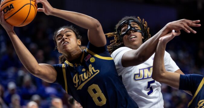 Notre Dame was up 56-36 with 3 1/2 minutes left in the third before JMU rallied. The Dukes’ 7-1 run to open the final period got them within 61-52. Lake Taylor High graduate Ashanti Barnes scored 22 points and grabbed 13 rebounds for JMU.