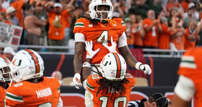 Despite a long weather delay, the No. 5 Hurricanes (3-0) rolled to a 49-12 win over the No. 18 Bulls at Hard Rock Stadium on Saturday, picking up their second top-25 win in the first three weeks of the season.