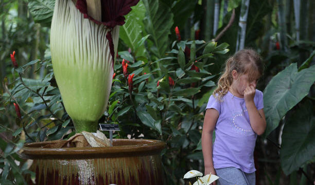 The plants, which can grow up to eight feet tall in cultivation, are know for their pungent odor and blooms that last only two to three days, according to the U.S. Botanical Garden website.