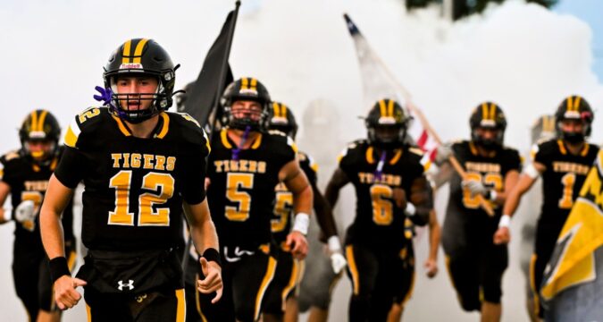 The Tigers needed only five offensive plays to rebuild the two-TD lead. A kick return to the 38-yard line plus a 15-yard late hit set them up at the Crusaders’ 47. Braxton Lakatosh’s 22-yard run led to Chase Sukanick’s 11-yard TD run with 9:36 left in the first half.