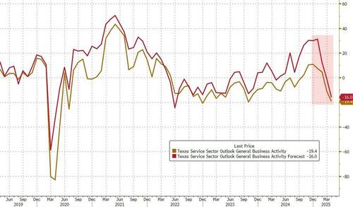 Following yesterday’s slump in a survey of Texas Manufacturing firms, the Dallas Fed released their survey of Texas Services sector firms today, and it was just a big a shitshow.