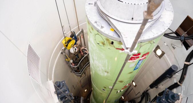 An unarmed Minuteman III missile sits inside a silo at F.E. Warren Air Force Base in Wyoming on July 9, 2025. (Michael A. Richmond/U.S. Air Force/TNS)
