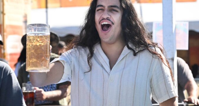 Jaiden Morales competes in the stein-holding competition Sunday, Oct. 5, 2025, at the 15th annual Oktoberfest at SteelStacks in Bethlehem. The festival continues Oct. 10-12. (Amy Shortell/The Morning Call)