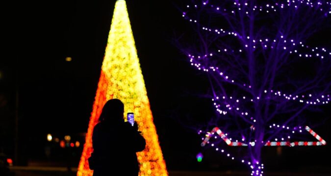 TOPSHOT – A Christmas lights display is seen on a house in Alexandria, Virginia, December 23, 2014. AFP PHOTO / SAUL LOEB (Photo by Saul LOEB / AFP) (Photo by SAUL LOEB/AFP via Getty Images)
