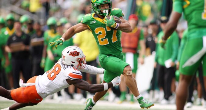 No. 4 Oregon, which thrashed Oklahoma State, received the other first place-vote and flip-flopped with Georgia. The Bulldogs’ uninspired win over FCS foe Austin Peay caused them to slip to No. 6 behind Miami.
