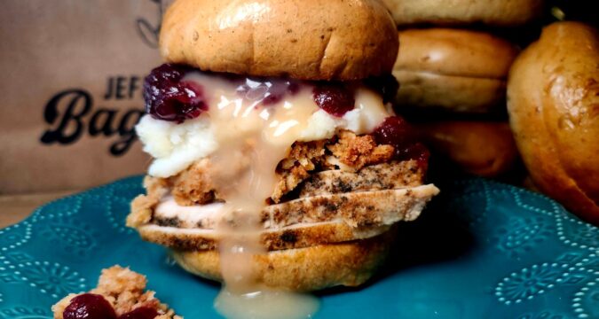 For all my love of Thanksgiving sandwiches, and the love of a handful of other folks I polled, the truth is that most people’s favorite is the one they make with their own leftovers. For a twist that supports local, consider crafting this year’s leftovers masterpiece on a Nana’s Stuffing bagel from Jeff’s Bagel Run.