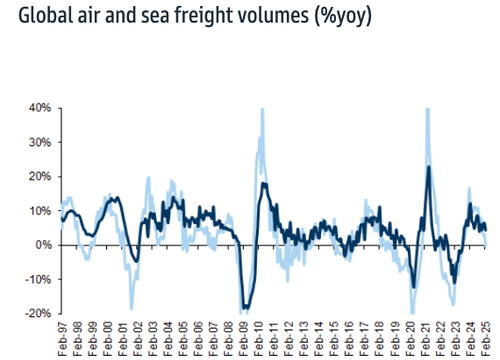 Goldman’s Patrick Creuset, Theodora Beadle, and others told clients Monday that first-quarter freight volumes remained solid. However, they noted this was primarily because of frontloading goods ahead of tariffs, and now, because of the deepening trade war, “the volume outlook is clearly negative from here.”