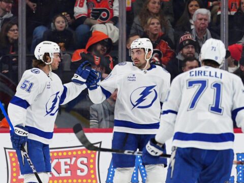 By ANTHONY SANFILIPPO PHILADELPHIA (AP) — Nikita Kucherov scored on each of his first two shots and assisted on Gage Goncalves’ two goals to help…