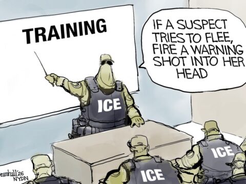 Cartoon by Bill Bramhall for Jan. 11, 2026. https://www.pilotonline.com/2026/01/10/cartoon-ice-training/