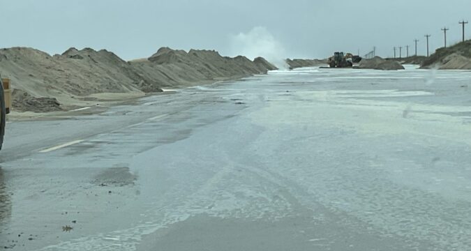 Jamie Kritzer, spokesperson for the North Carolina Department of Transportation, said the portion of N.C. 12 on Ocracoke Island from the ferry terminal to the National Park Service pony pens had been closed because of heavy ocean overwash. He said the Hatteras-Ocracoke, Cedar Island-Ocracoke and the Swan Quarter-Ocracoke ferries had all been suspended for at least the rest of the day and likely longer.