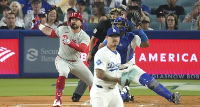 Harper’s go-ahead home run off reliever Alex Vesia leading off the eighth put the Phillies ahead 5-4.