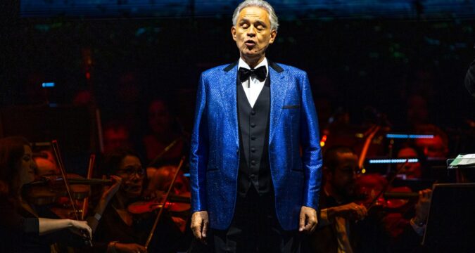 Italian tenor Andrea Bocelli performs with the backing of the Orlando Philharmonic Orchestra and Opera Orlando chorus conducted by Steven Mercurio at Kia Center in Orlando on Oct. 9, 2025. (Patrick Connolly/Orlando Sentinel)