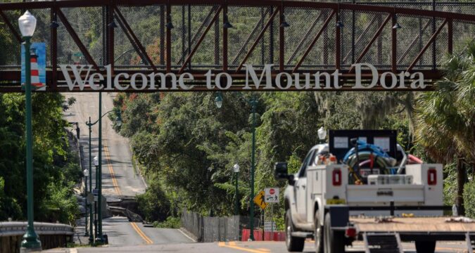 A slow moving storm that stalled over west Central Florida — including portions of Lake and Orange counties — dropped nearly 15 inches of rain on parts of Mount Dora and Eustis late Sunday, Oct. 26, 2025, washing out several main roads including Donnelly Street, between Limit Avenue and U.S. Highway 441. (James Wilkins/Orlando Sentinel)