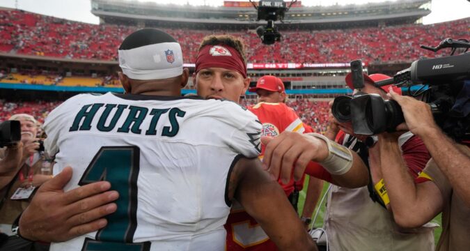 Hurts scored a touchdown on a tush push and the Eagles used the play seven times to help hand the Chiefs their first three-game losing streak with Mahomes and send them to their first 0-2 start since 2014.
