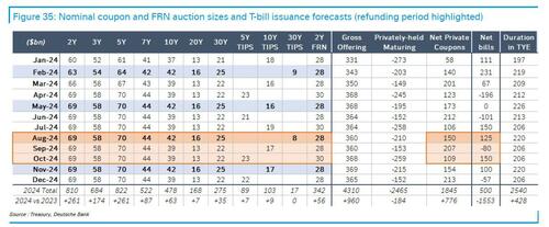 The refunding total is just shy of the record $126BN first reached in Feb. 2021; auction sizes across the curve began rising in 2018 to finance tax cuts and surged in 2020 to finance federal pandemic response