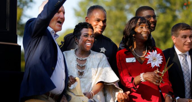 About 200 people gathered for the dedication ceremony — including city leaders, members of Congress, judges, law enforcement officials and faith leaders. Dozens of court staff, family, friends, neighbors and members of Delta Sigma Theta Sorority, Inc. also were there to support the occasion. The open space has been equipped with a large clock tower, seating areas, gardens and a large statue spelling “Love.” While working with the city on its design, Olds said she is excited to see the community gatherings that are to come.