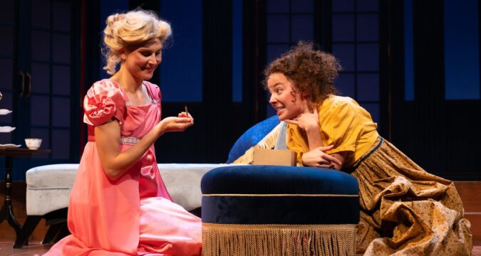 Hamill sends forth caricatures of famous characters, who in their Regency British costumes speak with slipping accents and tear around the stage as shamelessly as The Three Stooges. Her interpretive premise — that Emma does her foolish matchmaking because as a woman of some wealth she’s forbidden a true profession — is itself a bit bizarre. But a commitment to the notion by VSC’s producing artistic director, Tom Quaintance (here also directing), and a super funny cast list ripped from Austen’s pages, make the adaptation “sausage” not only edible but also delicious.