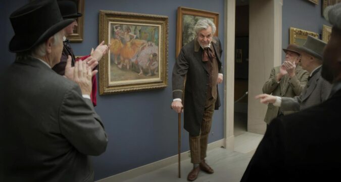 And then there’s the eponymous artist (Huston), eventually identified as Edgar Degas, real-life French Impressionist, who was not, in fact, literally stumbling around Rhode Island in 1906, and certainly not accepting a commission to paint French poodles. (So much French!) You are free to make the connection between the show’s ballerina and those he famously painted, and her nude in the tub with his masterpiece pastels of bathing women. But apart from bad eyesight, a hint of antisemitism and Huston muttering in French, there’s no substantial resemblance to the genuine article. Here, he seems half out of his mind, or half sober. He is quite concerned with getting paid, and I don’t blame him.