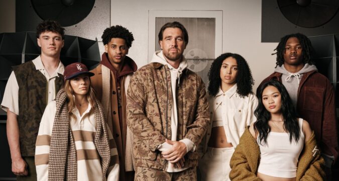 Kelce’s AE x Tru Kolors collaboration was announced last Wednesday, just one day after he and Swift confirmed their engagement. The collection features more than 90 pieces, including reimagined varsity jackets, rugby polos and vintage-inspired tees.