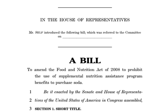 On Tuesday, Congressman Self’s office published a press release detailing how the FIZZ-NO Act is a major effort to improve public health and reduce taxpayer costs by eliminating soda from the Supplemental Nutrition Assistance Program (SNAP).