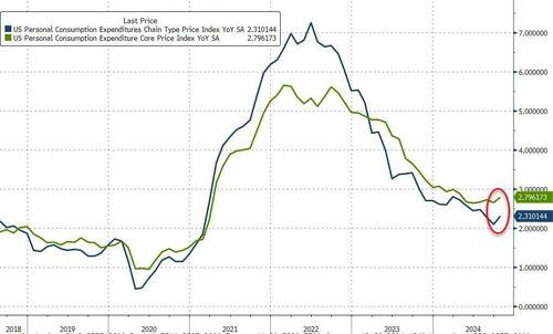 Headline PCE rose 0.2% MoM (as expected) lifting it 2.3% YoY (up from +2.1% YoY prior)…