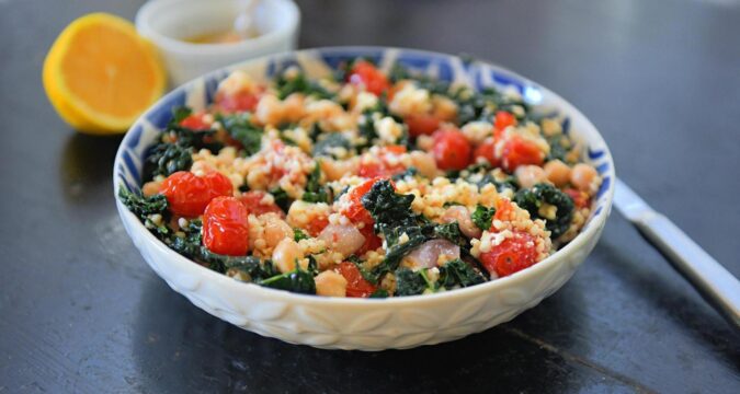 Waiting for the sorghum to finish cooking — it takes about an hour — is the hardest thing about this nutritious vegetarian salad. I used grape tomatoes and lacinato (Tuscan) kale, but you could add any favorite green or veggie. Consider doubling the dressing if you prefer a really moist grain salad.